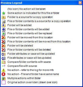 Some action is indicated for this file or folder: This icon is displayed at the root level of the preview and indicates that actions are going to occur. Expand the preview for more detail.